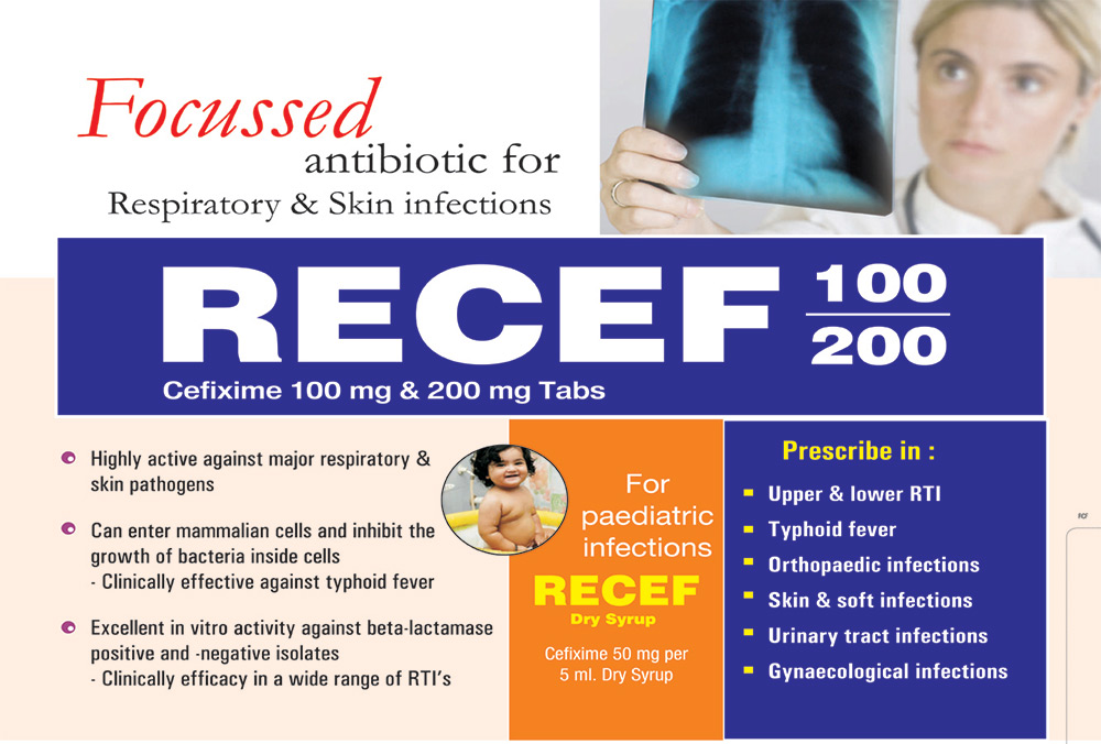 | RECEF Syp. | Each 5 ml Contains:- Cefixime 50 mg. | 30 ml | ||