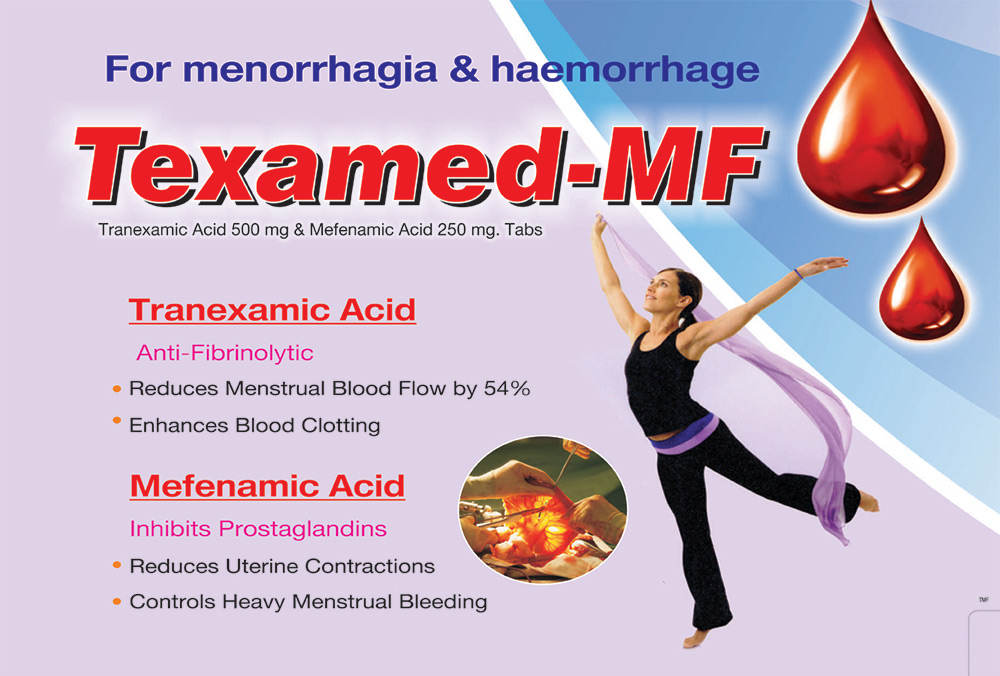 | TEXAMED-MF | Tranexamic Acid B.P 500 mg Mefenamic Acid I.P 250 mg | 10 x 10 T |