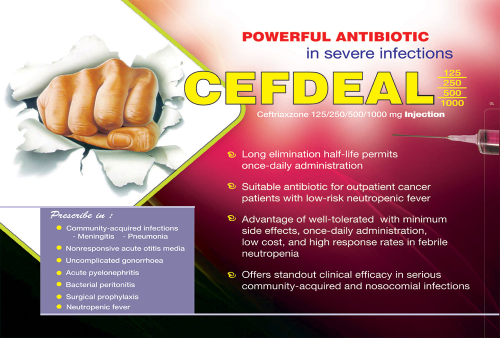 | CEFDEAL Inj. 250 mg | Ceftriaxone 250 mg | 1 Vial |
