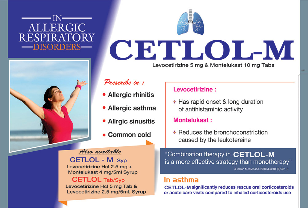 | CETLOL - M | Levocetirizine 5 mg, Montelukast 10 mg | 10 x 10 T |